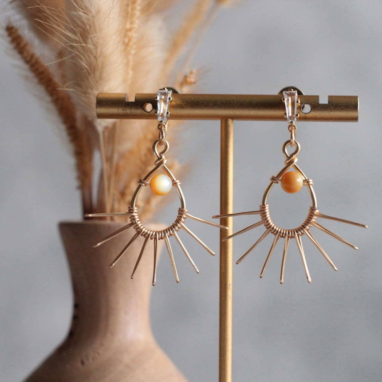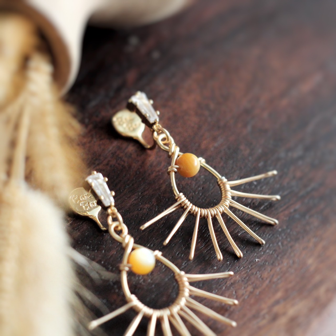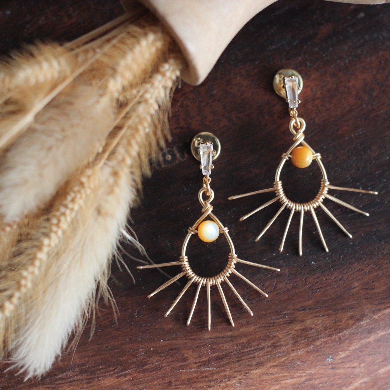 -  黃蝶貝、鍍14K金銅線、鋯石配件